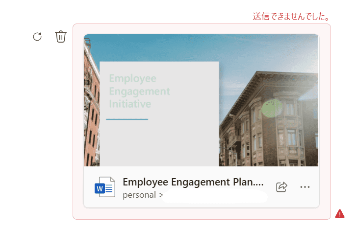 Teams のチャットではファイルを添付したうえでメッセージを送ることが可能ですが、メッセージに添付されたファイルのアップロードが想定通り行われないことによって、「送信できませんでした」というメッセージが表示されることがあります。