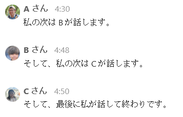 ※話者のプライバシー保護の観点よりトランスクリプションでアカウントの表示名が表示される箇所を、A さん、B さん、C さんにそれぞれ置換しています。
