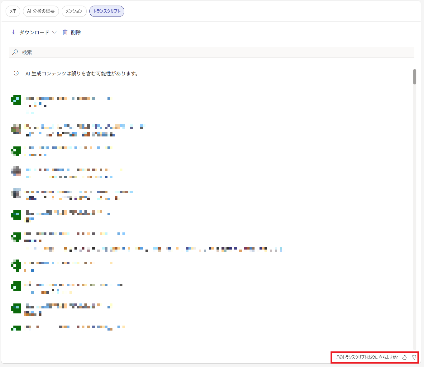 ※トランスクリプト内の “このトランスクリプトは役立ちますか?” の箇所 (赤枠)