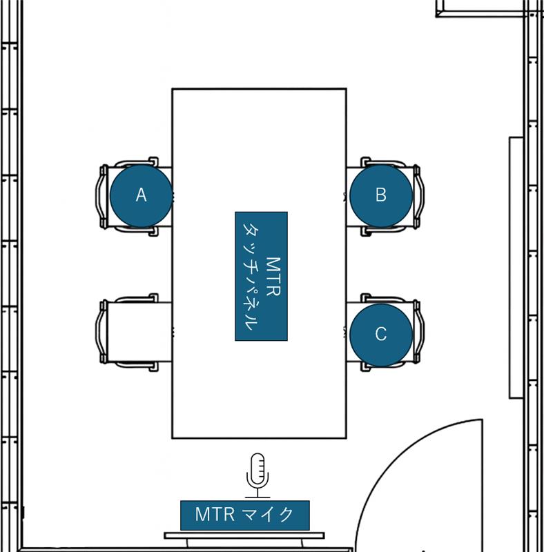 人と MTR デバイス群をそれぞれ以下のように配置します。MTR マイクの指向性は机の方面です。
