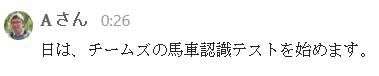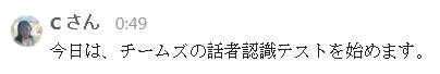 最初のテストですので、話者として認識されるかどうかという確認も含めて「今日は Teams の話者認識テストを始めます。」というセリフを全員に読んでもらいます。