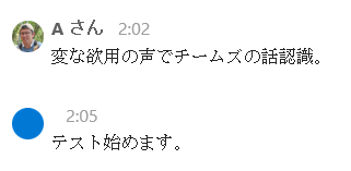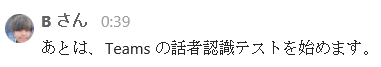 あとは、B さんのテストだけ “チームズ” ではなく、”Teams” と文字起こしされているのも印象的です。