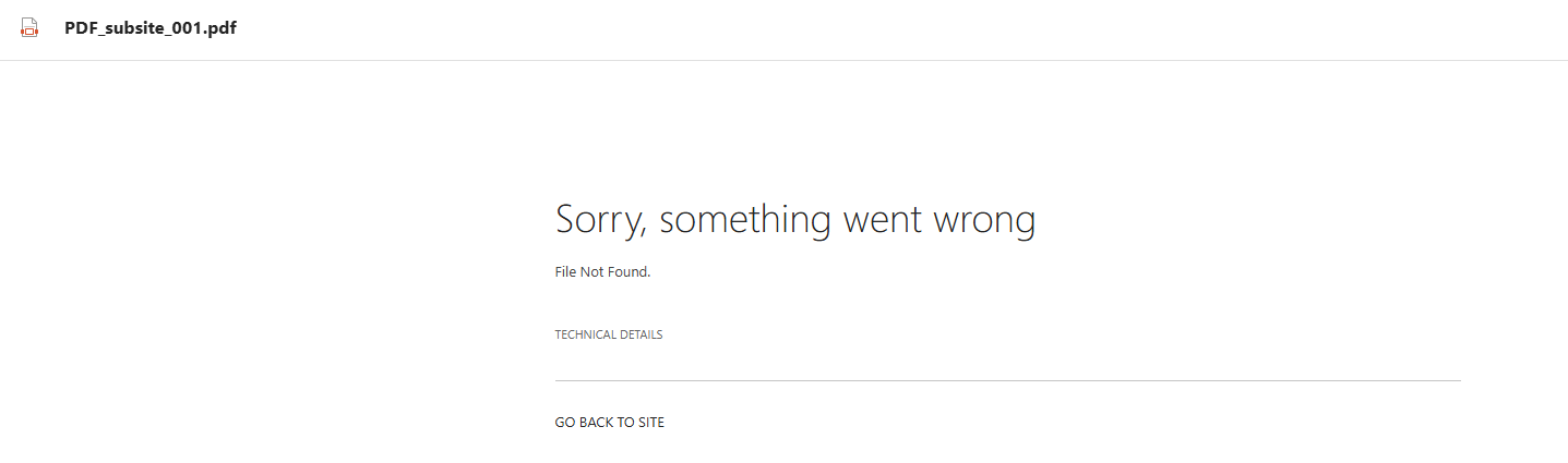 - 対象の PDF ファイルを SPO のサブサイト以外の場所 (SPO サイト直下のドキュメント ライブラリなど) へ保存する